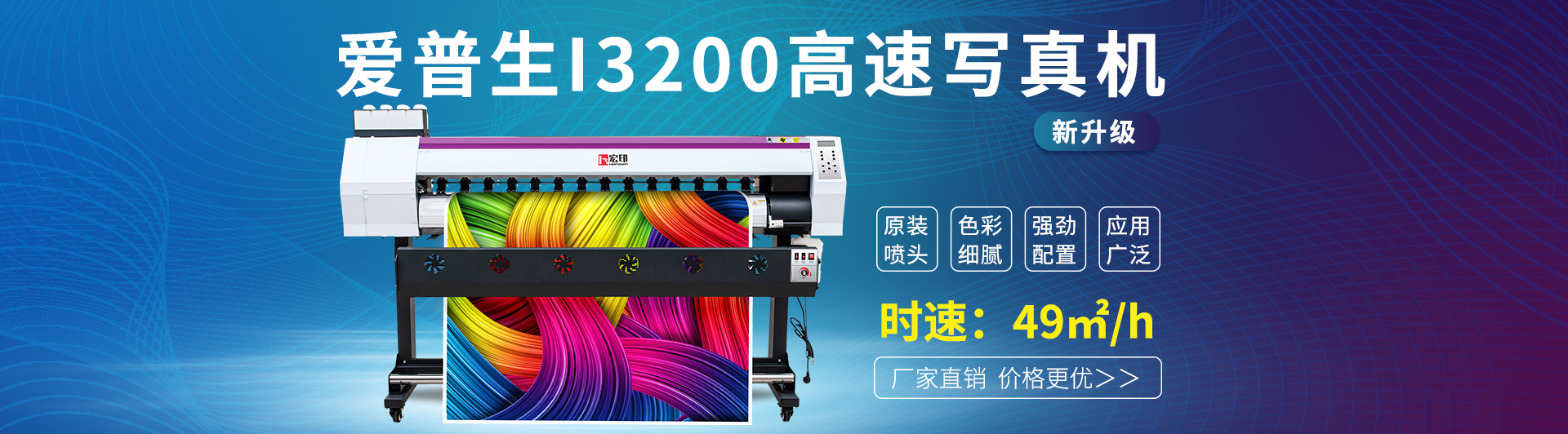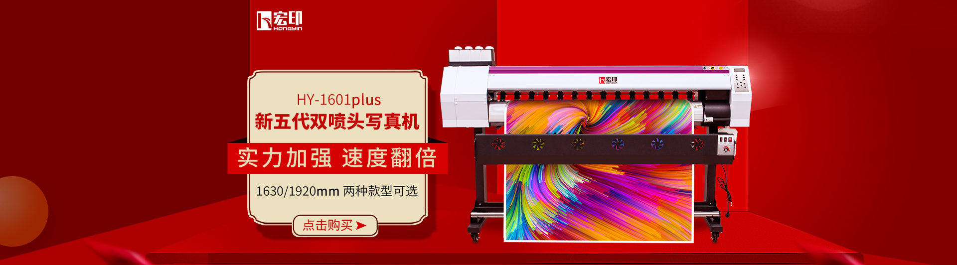 宏印高速壓電(diàn)寫真機HY-1601plus,配備愛普生(shēng)新五代噴頭雙噴頭,速度更快,精度更高,更穩定!打印寬幅可達1650mm,配備紅外(wài)烘幹風...